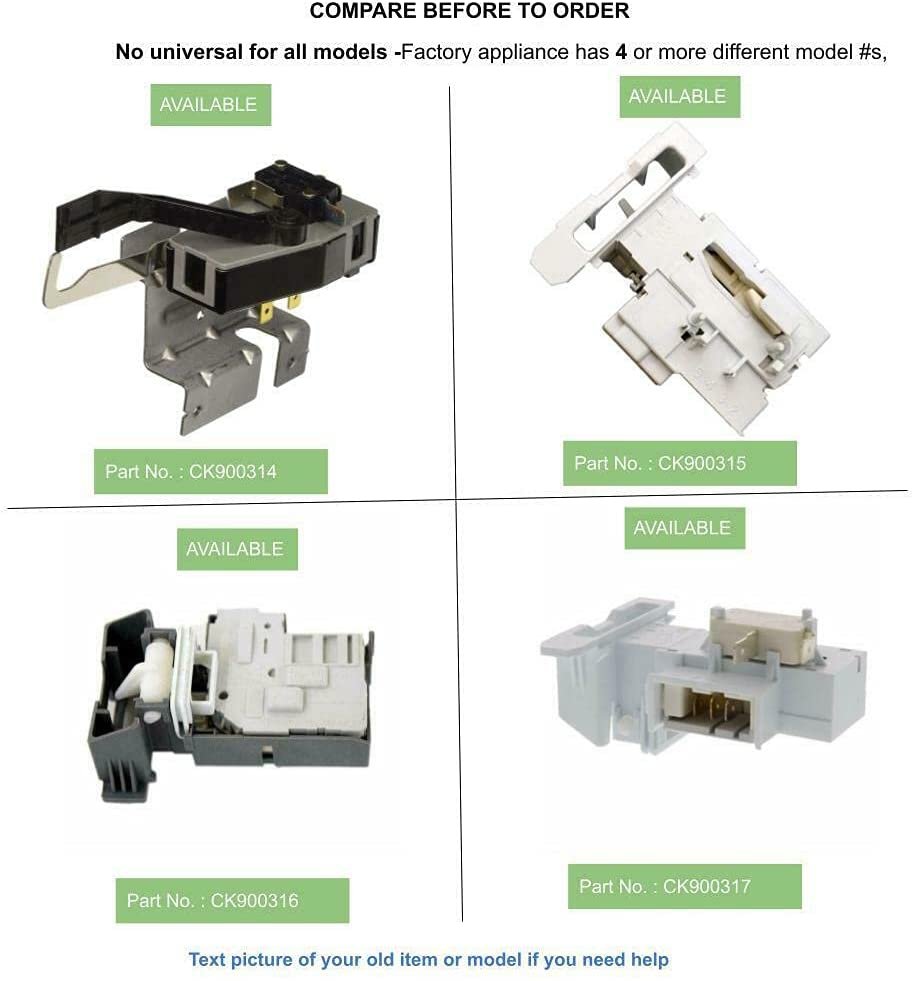 E-DrUS CK900317 Washer Stackable Laundry Lid Lock Switch Compatible With GE Kenmore and compatible with Spacemaker Westinghouse Heavy DUTY DrEquipUS register brand in process- Amazon don’t allow sell similar *****If you need faster see other options in check out,The part has 20 different part numbers like: CK900317 if you have old serial number, the new part has new number and looks different of your old part but the new part is perfect fit for old and new serials ,,,,,,,,,,,,,,,,,,,,,,,,,,,,,, and more.*****This part is perfect fit, you don’t need additional wire cables, terminal or glue, easy job 15 minutes average time, NON OEM Universal Replacement Part with OEM standards, replacement for and compatible with True, Beverage Air, Plased, Tecumseh, RCA, Estate Whirlpool, Monogram, Maytag GE Kenmore Samsung, Frigidaire,Amana, LG Miele and more.. those brands are just used like illustration, Models