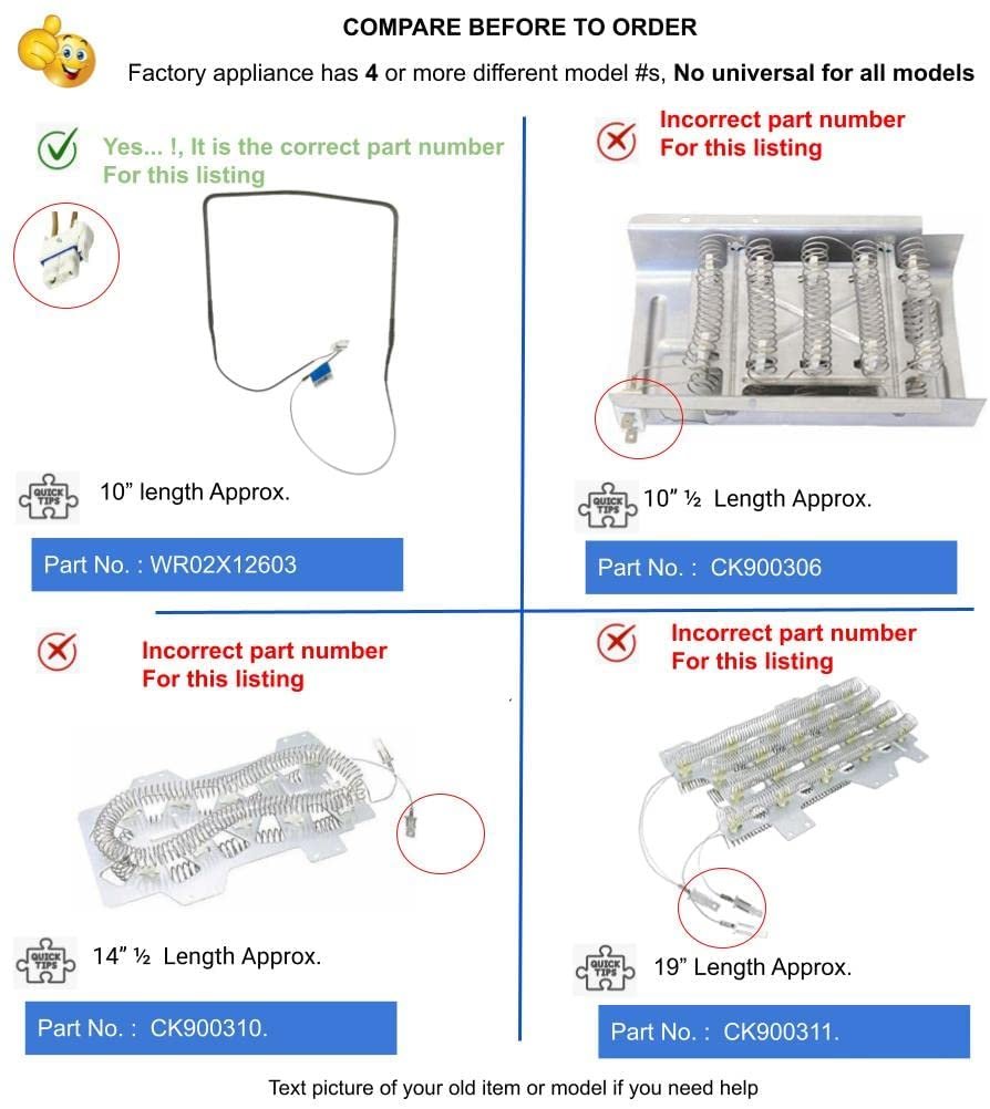 GlobPro 1476453 Fridge Defrost Heater Metal Sheath 10” length Approx. Replacement for and compatible with GE Heavy DUTY Glob Pro Solutions register brand in process- Amazon don’t allow sell similar ***** Check options categorized by measures o connectors, this product have different numbers of parts . ***If you need faster see other options in check out,The part has 20 different part numbers like: 1476453 if you have old serial number, the new part has new number and looks different of your old part but the new part is perfect fit for old and new serials DFSF9VKBABB, DFSF9VKBAWW, DFSS9VKBASS (), GFSF6KEXABB, GFSF6KEXACC, GFSF6KEXAWW, GFSF6KEXBBB, GFSF6KEXBCC, GFSF6KEXBWW, GFSF6KEXCBB, GFSF6KEXCWW, GFSF6KKXAWW, GFSF6KKXBBB, GFSF6KKXBWW, GFSF6KKYABB, GFSF6KKYAWW, GFSF6KKYBBB, GFSF6KKYBWW, GFSF6KKYCBB, GFSF6KKYCWW, GFSL6KEXALS, GFSL6KEXBLS, GFSL6KEXCLS, GFSL6KKXALS, GFSL6KKXBLS, GFSL6KKYALS, GFSL6KKYBLS, GFSL6KKYCLS, GFSM6KEXABG, GFSM6KEXBBG, GFSS6KEXASS, and more.*****This part is perfect fit, you don’t need additional wire cables, terminal or glue, easy job 15 minutes average time, NON OEM Universal Replacement Part with OEM standards, replacement for and compatible with True, Beverage Air, Plased, Tecumseh, RCA, Estate Whirlpool, Monogram, Maytag GE Kenmore Samsung, Frigidaire,Amana, LG Miele and more.. those brands are just used like illustration, Models