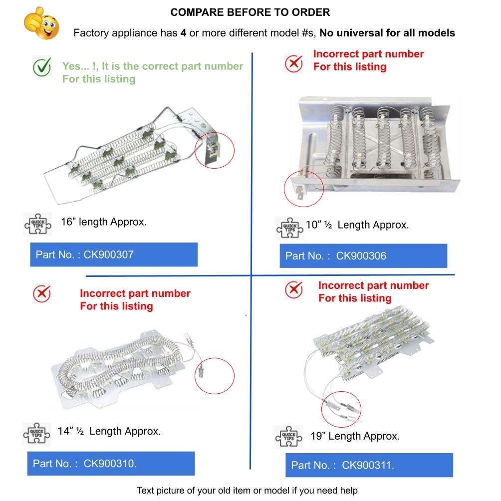 GlobPro 2013 8218 279218 279247 Dryer Heating Element Replacement for and compatible with Whirlpool Kenmore Heavy DUTY Glob Pro Solutions register brand in process- Amazon don’t allow sell similar ***** Check options categorized by measures o connectors, this product have different numbers of parts . ***If you need faster see other options in check out,The part has 20 different part numbers like: 2013 8218 279218 279247 if you have old serial number, the new part has new number and looks different of your old part but the new part is perfect fit for old and new serials ,,,,,,,,,,,,,,,,,,,,,,,,,,,,,,, and more.*****This part is perfect fit, you don’t need additional wire cables, terminal or glue, easy job 15 minutes average time, NON OEM Universal Replacement Part with OEM standards, replacement for and compatible with True, Beverage Air, Plased, Tecumseh, RCA, Estate Whirlpool, Monogram, Maytag GE Kenmore Samsung, Frigidaire,Amana, LG Miele and more.. those brands are just used like illustration, Models