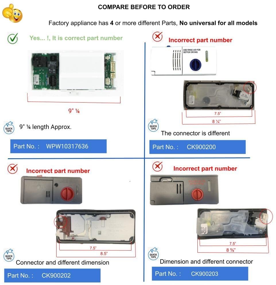 GlobPro WPW10317636 Dryer Control Board 9" ¼ length Approx. Replacement for and compatible with Whirlpool Heavy DUTY Glob Pro Solutions register brand in process- Amazon don’t allow sell similar ***** Check options categorized by measures o connectors, this product have different numbers of parts . ***If you need faster see other options in check out,The part has 20 different part numbers like: WPW10317636 if you have old serial number, the new part has new number and looks different of your old part but the new part is perfect fit for old and new serials 7EWED5550YW0, 7EWED5550YW1 (), 7MWED5600BW0 (), 7MWGD5550XW0, 7MWGD5550XW1, 7MWGD5600BW0 (), WED5500XL0, WED5500XW0, WED5500XW1 (), WED5550XW0, WED5600XW0, WGD5500XL0, WGD5500XL1, WGD5500XW0, WGD5500XW1, WGD5500XW2 (), WGD5550XW0, WGD5550XW1, WGD5600XW0, WGD5600XW1, WGD5600XW2 (), YWED5500XL0, YWED5500XW0, YWED5500XW1 (), YWED5600XW0, YWED5600XW1 (), , , , , , and more.*****This part is perfect fit, you don’t need additional wire cables, terminal or glue, easy job 15 minutes average time, NON OEM Universal Replacement Part with OEM standards, replacement for and compatible with True, Beverage Air, Plased, Tecumseh, RCA, Estate Whirlpool, Monogram, Maytag GE Kenmore Samsung, Frigidaire,Amana, LG Miele and more.. those brands are just used like illustration, Models