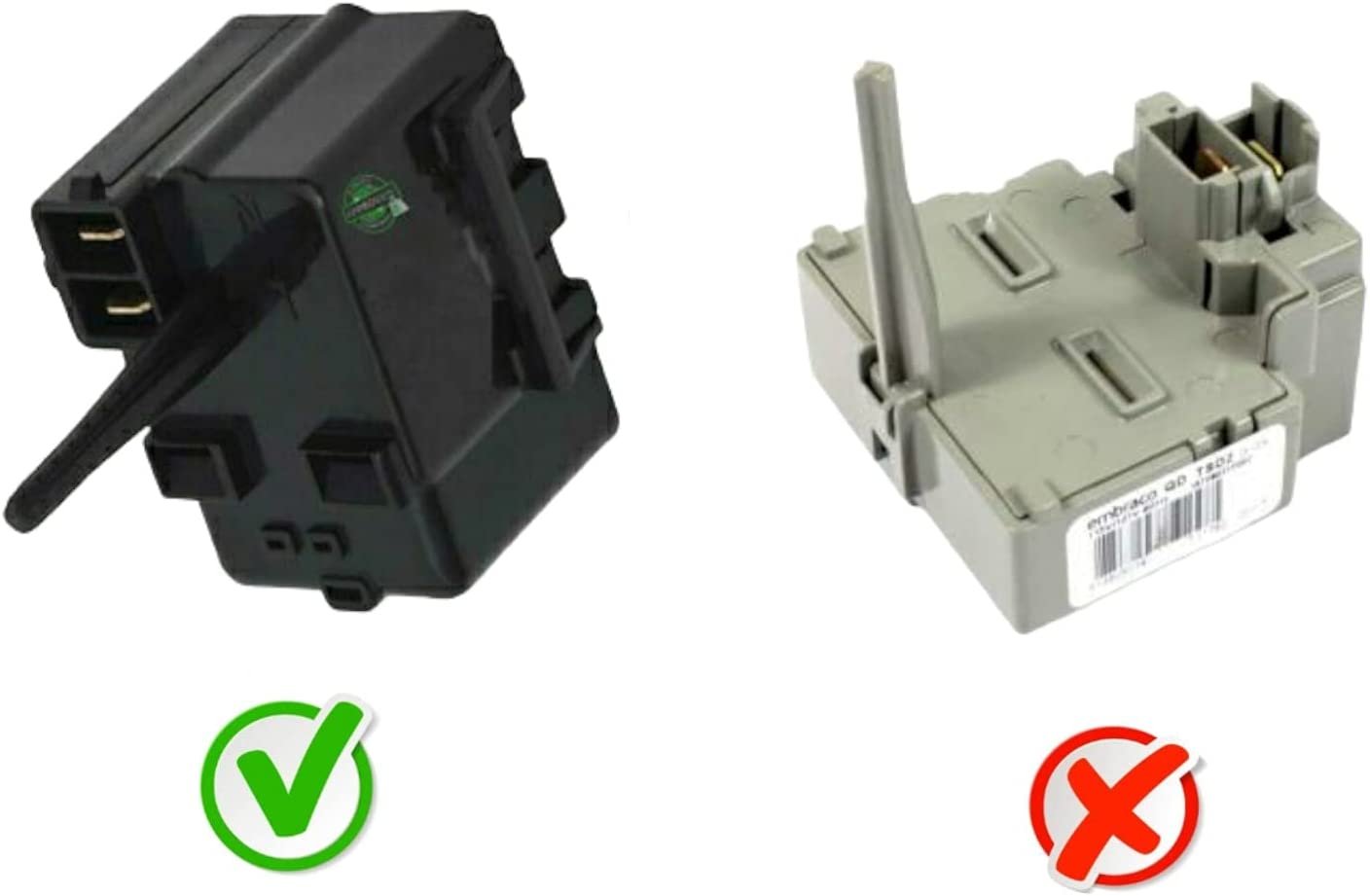 GlobPro WR08X10112 Frid. Compressor Start Relay ¼" Terminal Replacement for and compatible with General Electric Hotpoint Heavy DUTY Glob Pro Solutions register brand in process- Amazon don’t allow sell similar *****If you need faster see other options in check out,The part has 20 different part numbers like: WR08X10112 if you have old serial number, the new part has new number and looks different of your old part but the new part is perfect fit for old and new serials GBSC3HBYARBB,GBSC3HBYARCC,GBSC3HBYARWW,GDSC3KCXABB,GDSC3KCYBBB,GDSC3KCYBWW,GDSC3KCYCBB,GDSC3KCYCWW,GDSL3KCXARLS,GDSL3KCYBLLS,GDSL3KCYCLLS,GDSL3KCYCRLS,GDSS3KCYBRSS,GDSS3KCYCRSS,GFSF2KEXABB,GFSF2KEXACC,GFSF2KEXAWW,GFSL2KEXALS,GFSS2KEXASS,GSF25JGDCBB,GSF25JGDCWW,GSH25GGBBWW,GSH25JGBCBB,GSH25JGBCWW,GSH25JGDCBB,GSH25JGDCCC,GSH25JGDCWW,GSQ25JSBBSS,HSH25GFBBSA,PFSF2MIXABB, and more.*****This part is perfect fit, you don’t need additional wire cables, terminal or glue, easy job 15 minutes average time, NON OEM Universal Replacement Part with OEM standards, replacement for and compatible with True, Beverage Air, Plased, Tecumseh, RCA, Estate Whirlpool, Monogram, Maytag GE Kenmore Samsung, Frigidaire,Amana, LG Miele and more.. those brands are just used like illustration, Models